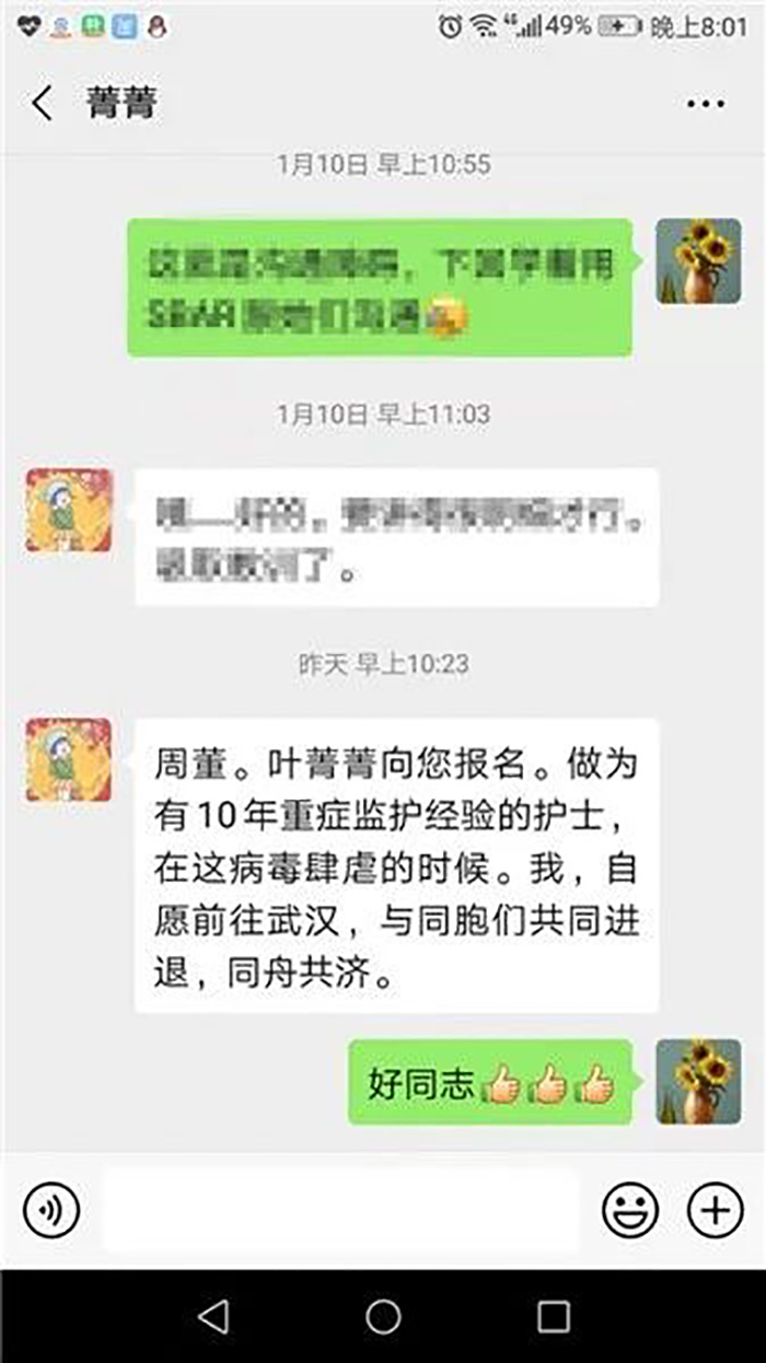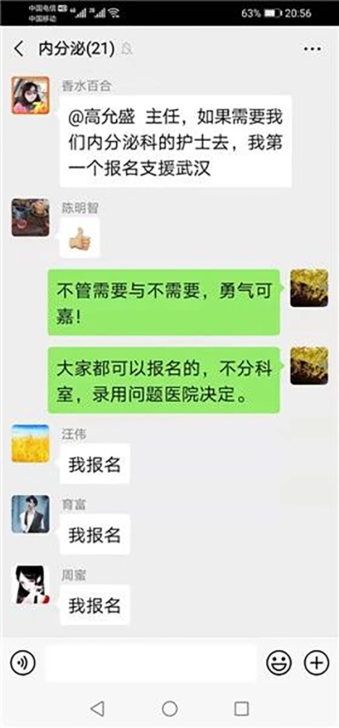 党员、感染科护士陈惠娜,第一时间主动报名援助湖北应对新型冠状病毒感染肺炎疫情。尽管目前尚未“出征”,但她已处于“时刻准备着”状态。 “此前领导有提到可能会派人支援武汉,问我们大家的意见,我当时没多想就回答‘我可以’。”陈惠娜语气中带着坚定。 一名党员就是一面旗帜。身为党员的陈惠娜,从事护理工作已有17年,技能扎实,经验丰富。连日来,她基本都是连轴转,奋战在工作岗位上。工作之余,她总会不自觉地掏出手机阅读有关新型冠状病毒肺炎疫情的消息。“看着前方疫情严重,医务人员非常辛苦,希望自己也能到前线尽一份力量。” 陈惠娜是护士,也是母亲。“去前线我不怕,再苦再累我也不怕。但唯一的担忧可能是两个孩子年龄小,我去了就没法儿好好照顾他们。”提到孩子,陈惠娜有些愧疚,但她知道,接下来哪里更需要她。“需要我的话我就去,这是我们义不容辞的责任!” 呼吸一科护士长:王赫铭 作为一名二孩妈妈,王赫铭仍坚持报名。“已经跟家里说好了,如果我前往武汉参与抗击肺炎疫情,他们一定会让我无后顾之忧的。”她说,能为防控新型冠状病毒感染的肺炎疫情贡献自己的最大力量无上光荣。 ICU护士:刘小婧 “妈,我报名要去武汉支援。”24日晚,刘小婧回到家中,向家人汇报了报名一事。 “那就去!不要有牵挂!”“你身为党员,确实需要身先士卒。”刘小婧没想到,作为普通农民的爸爸、妈妈对自己做的决定没有任何反对意见。父母回复的两句话让刘小婧心里更加有底气——自己身为医务更有何畏惧。 “健康所系,性命相托”,这是工作,更是责任。刘小婧说到。 骨科主任医师 :孙竞群 母亲陈新珠是一名“白衣天使,”也是91club