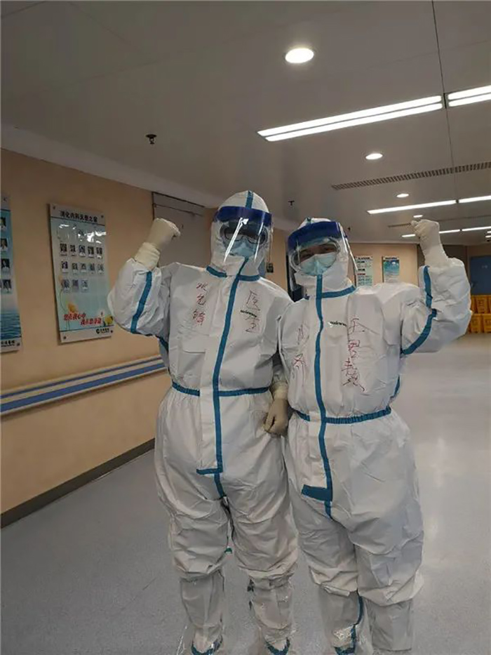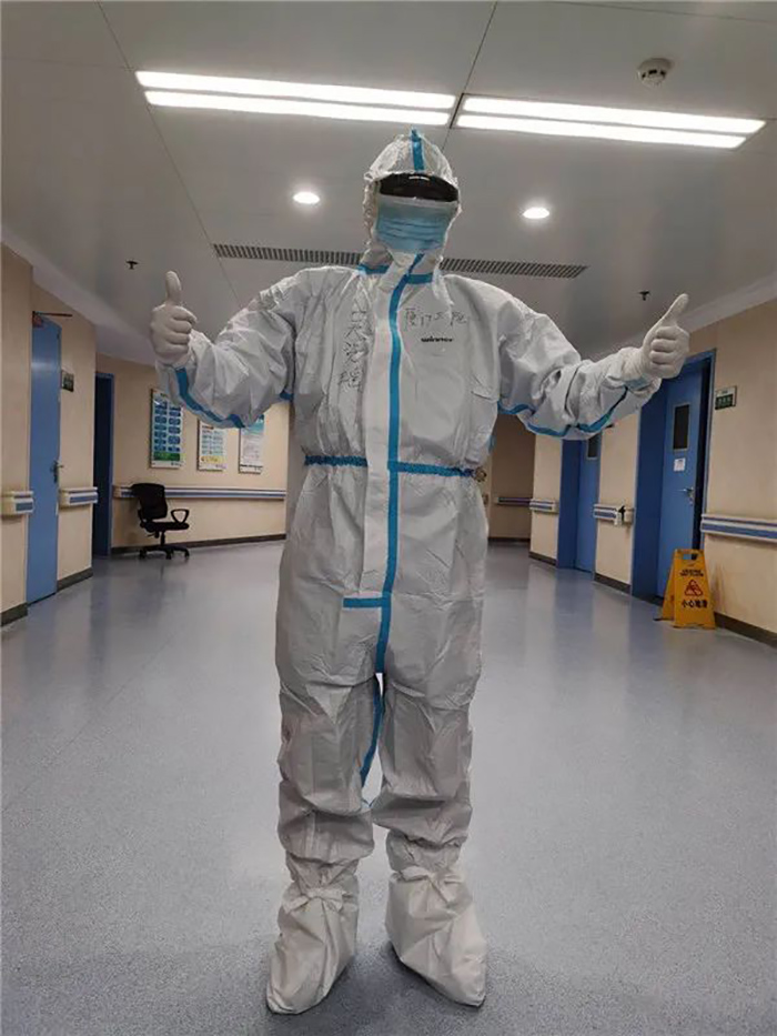 由于穿着厚厚的防护服,查房时间过长,间断引起缺氧头晕、干呕。在高负荷的工作状态下,他不知疲倦,不畏艰难,认真制定诊疗方案、积极参加专家会诊,有条不紊地推进整体救治工作。面对新冠患者的心理恐惧,细心地给予疏导。2月18日,刚交完班,护士急呼26床出现氧合下降、呼吸急促,随时有生命危险,他快速穿上防护服,直奔病区,经调整呼吸机参数及加强氧疗等多项治疗后患者血氧逐渐上升至80%,马上联系插管及转送ICU治疗。由于抢救及时,患者的生命得以保全。