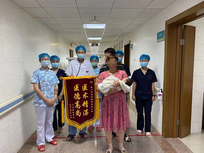 原来,当天刘女士因腹痛前来医院就诊,就诊前打算进厕所如厕,“完全没想到孩子会在这会分娩。”回忆起当天惊心动魄的那一幕,刘女士及其家人仍心有余悸。日前(7月19日),小婴儿的家属为三院新生儿科送来锦旗,答谢新生儿科全体医护人员,“感谢三院的医护人员及时抢救,让她们母子平安,让我们一家人得以平安团聚!”