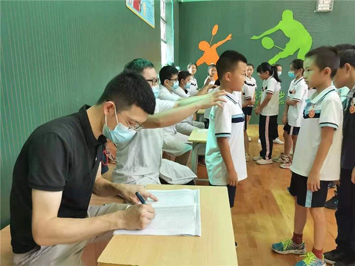 对接,医校联合开展学生扁平足筛查与脊柱健康检查,“希望做到早筛查、早发现、早干预诊治,降低手术率,让三实小的孩子们成为‘身体健实’的三实学子。”