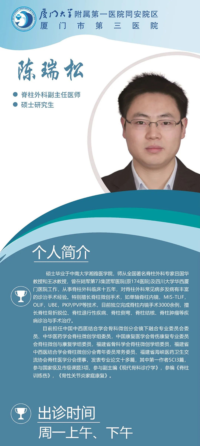 【名医在咱厝】专家加盟 | 陈瑞松:脊柱外科副主任医师