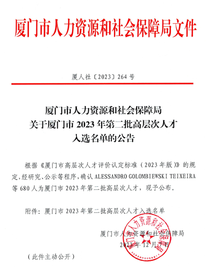 根据《厦门市高层次人才评价认定标准(2023年版)》的规定,经研究、公示等程序,厦门市人力资源和社会保障局确认了680人为厦门市2023年第二批高层次人才。