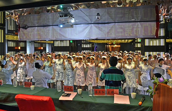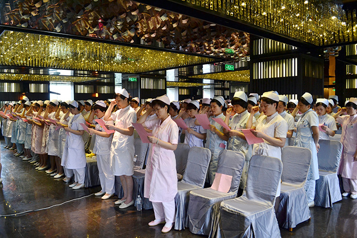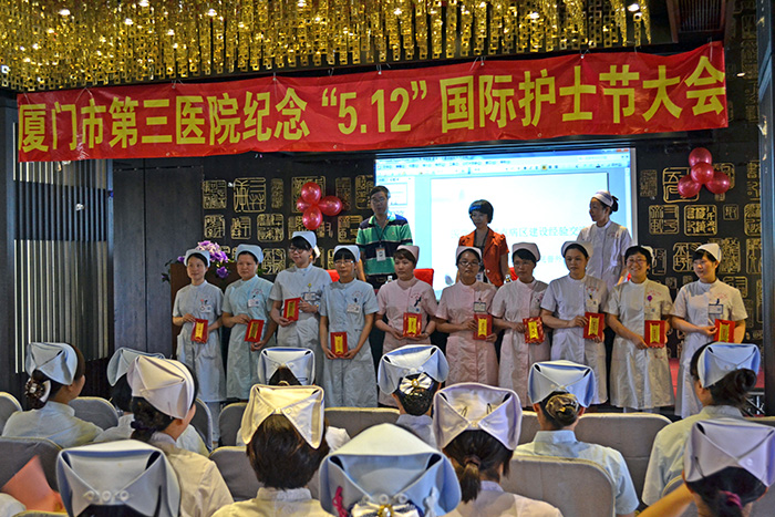 今天下午,91club 召开护士大会纪念第102个国际护士节,院党委书记彭月芗致开幕辞,会上表彰10名“十佳护士”,同时进行医学人文建设经验交流。会后,一首《感恩的心》手语歌把整场大会氛围再次推向高潮。