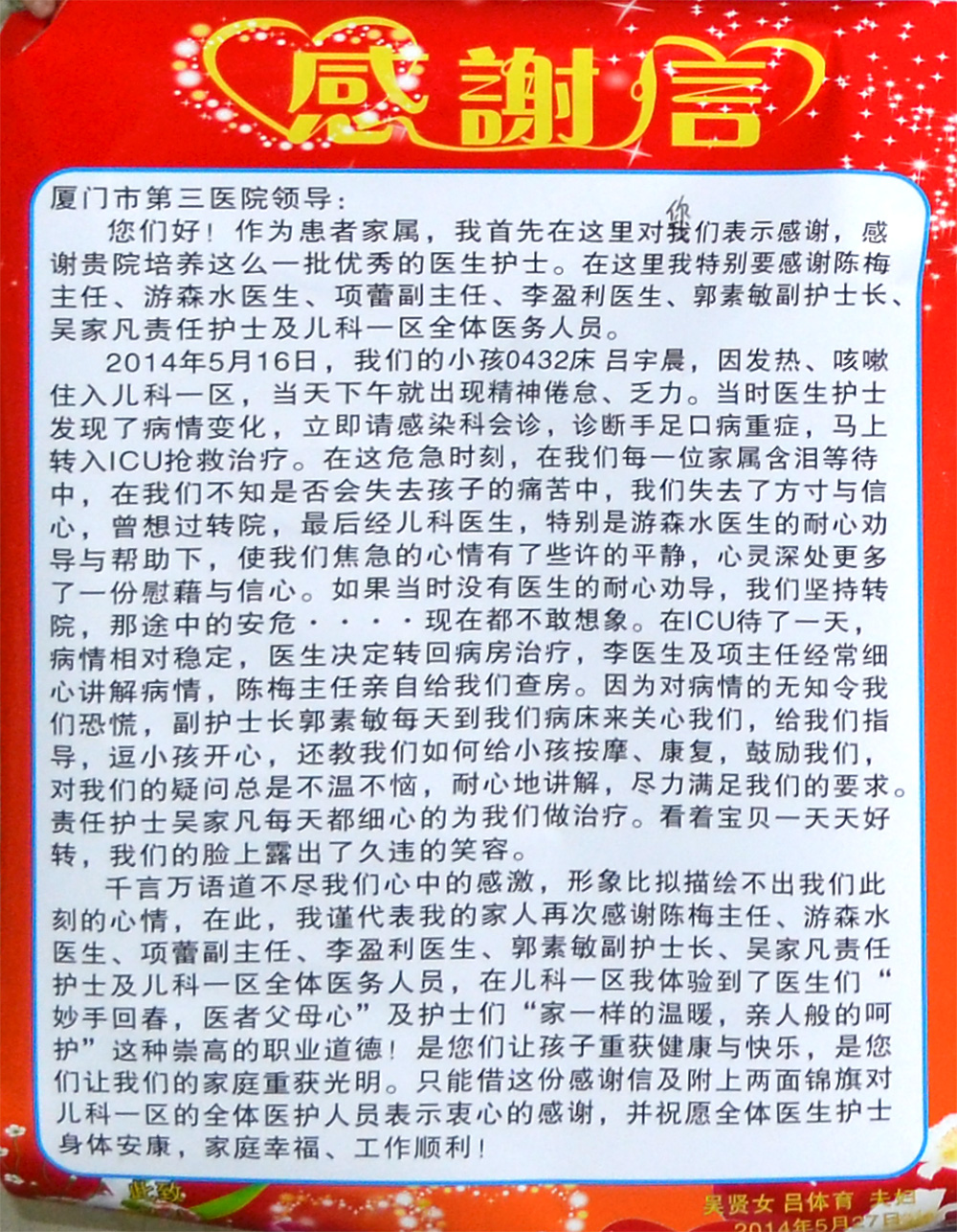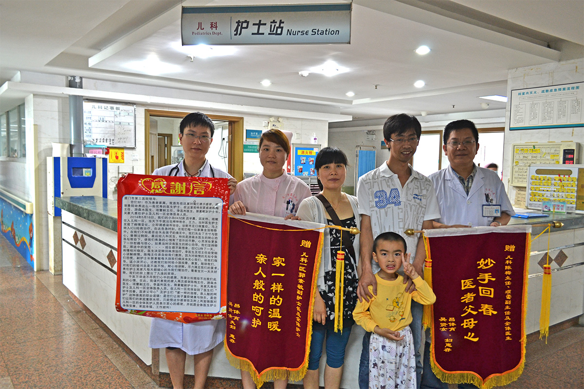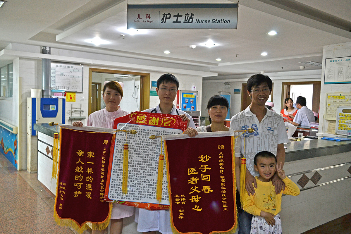 儿科患儿家属送来锦旗,感谢医生护士的悉心照顾!