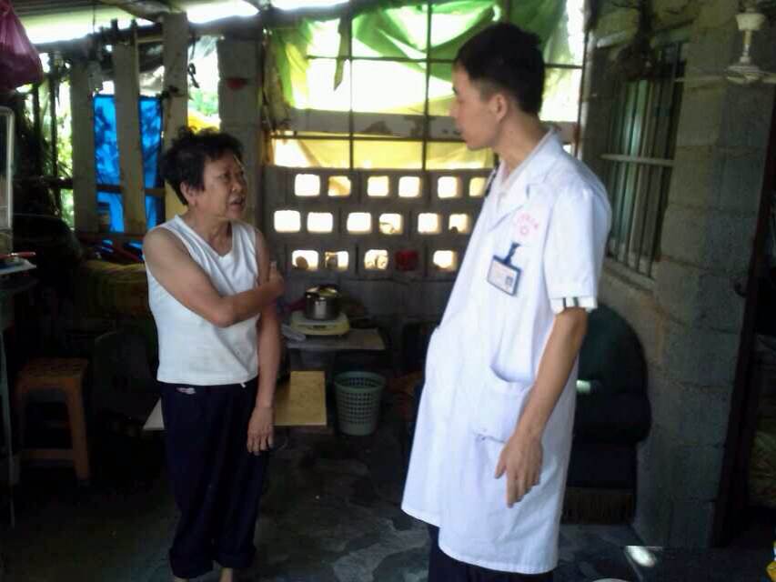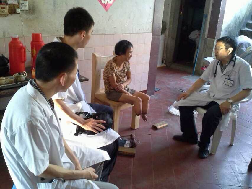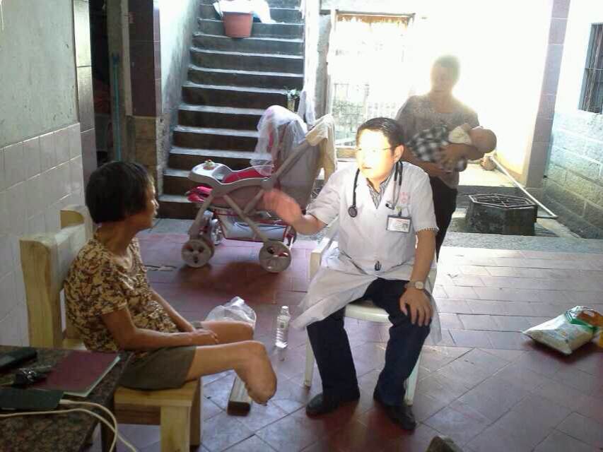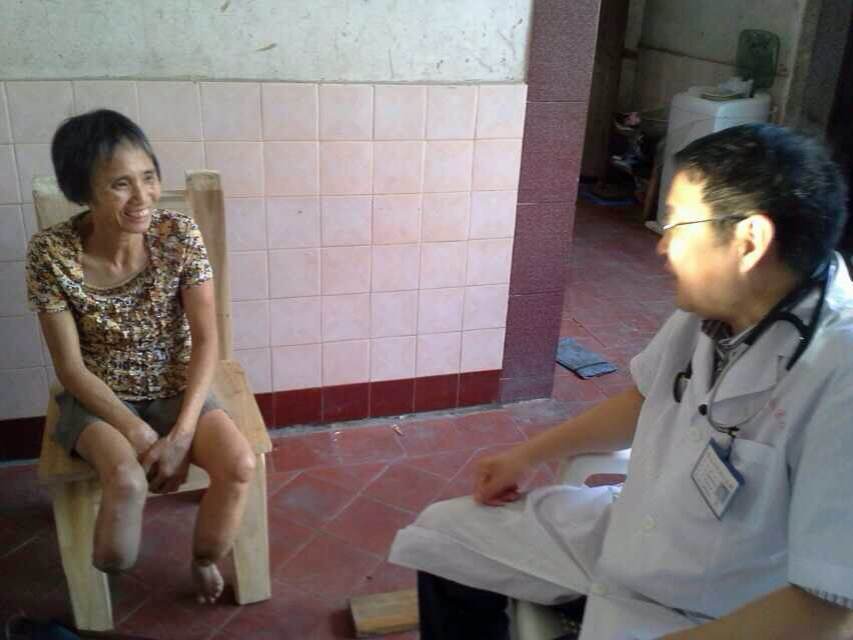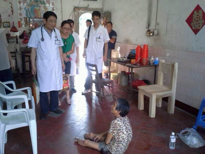 昨天第三医院党员志愿服务队下乡走村入户到汀溪镇褒美村送医送药慰问贫困家庭,在村支书的指引下,我们首先来到了叶阿丽(化名)的家。刚走进厅堂,映入眼帘的竟然是一位失去双腿瘫坐在地的残障农村妇女,她身体瘦弱,年逾六旬。看到家里来人,她热情地与大家打招呼,脸上丝毫没有自卑和尴尬,连连让座。看着她凄苦的样子,大家不忍坐下。于是我说:“今天第三医院的医务人员走村入户来看望贫困家庭,希望能对你有所帮助。”我让她到椅子上坐,她却始终不肯,只是说:“在地板上已坐了40多年早已习惯。”我只好说:“你坐在地板上,大家也都不敢坐。”于是她答应了我的请求。我想扶她,她却不肯,说自己能行。于是奇迹发生了,只见她双手拿着两块小木板撑地,将残缺的双腿翘起,我们还未看清,她就一个“箭步”麻利地坐在了椅子上,在场的人都被她的举动惊呆了。我仔细地查看她的双腿,右侧截肢的残腿留下陈旧的疤痕。左侧以前断裂的小腿仅剩些许皮肉连着足部,由于多年废用,左足明显萎缩,细看隐约还能辨别出足的形状。我问起她的伤情和生活,她说:“40多年前,在村部建设时,不慎砸断了双腿,由于当时的家庭条件差,住院不久就出院了。出院在家,双腿的伤口经常破溃、流脓,臀部久坐反复出现褥疮。家中缺乏劳动力,家庭贫困,只能经常用盐水和着喝过的茶叶渣清洗伤口,在不知不觉中伤口逐渐愈合,岁月也年复一年的度过,平时的生活靠自己打理”。我对她说:“你的残肢可以重新手术后安装假肢,以后的生活会方便很多,臀部也可减少压疮的机会,如果需要帮助,第三医院会尽绵薄之力”。她说:“年龄已大,残缺的生活已经多年,早已适应,不想再做手术,最艰难的日子已度过,保持好心情一切都会改变”。她对我们的善意表示感谢,对第三医院的关爱非常感激。在整个交谈过程中,她的脸上始终洋溢着灿烂的笑容,没有痛苦,没有悲伤,只有对生活的满足。告别阿丽,我们又走进另一个需要帮扶的贫困家庭。