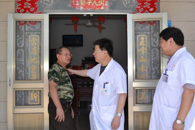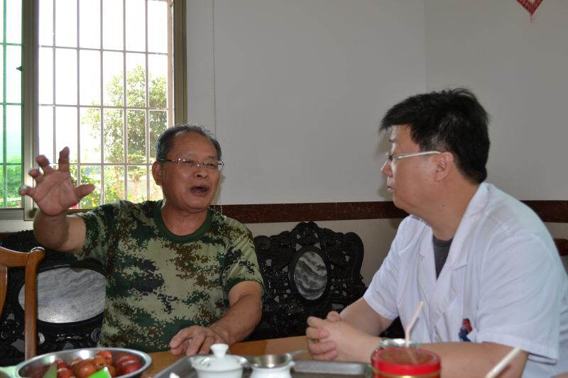 7月12日,烈日当空,第三医院院长助理、神经外科主任、主任医师郭之通,神经外科副主任、主任医师张弋到汀溪镇五峰村走村入户进行出院病人回访,了解病人身体恢复状况,并针对性地进行健康指导。据了解,老许1年前在第三医院成功接受了经单鼻孔神经内窥镜下微创垂体腺瘤切除术,目前恢复良好,能够照常生活、照常工作。老许对第三医院神经外科医务人员德艺双馨的服务十分感激,他对记者说:“我在三院住院41天,那天要出院,我还真舍不得”, “医生就像是我的朋友,我的兄弟”,连连夸赞。