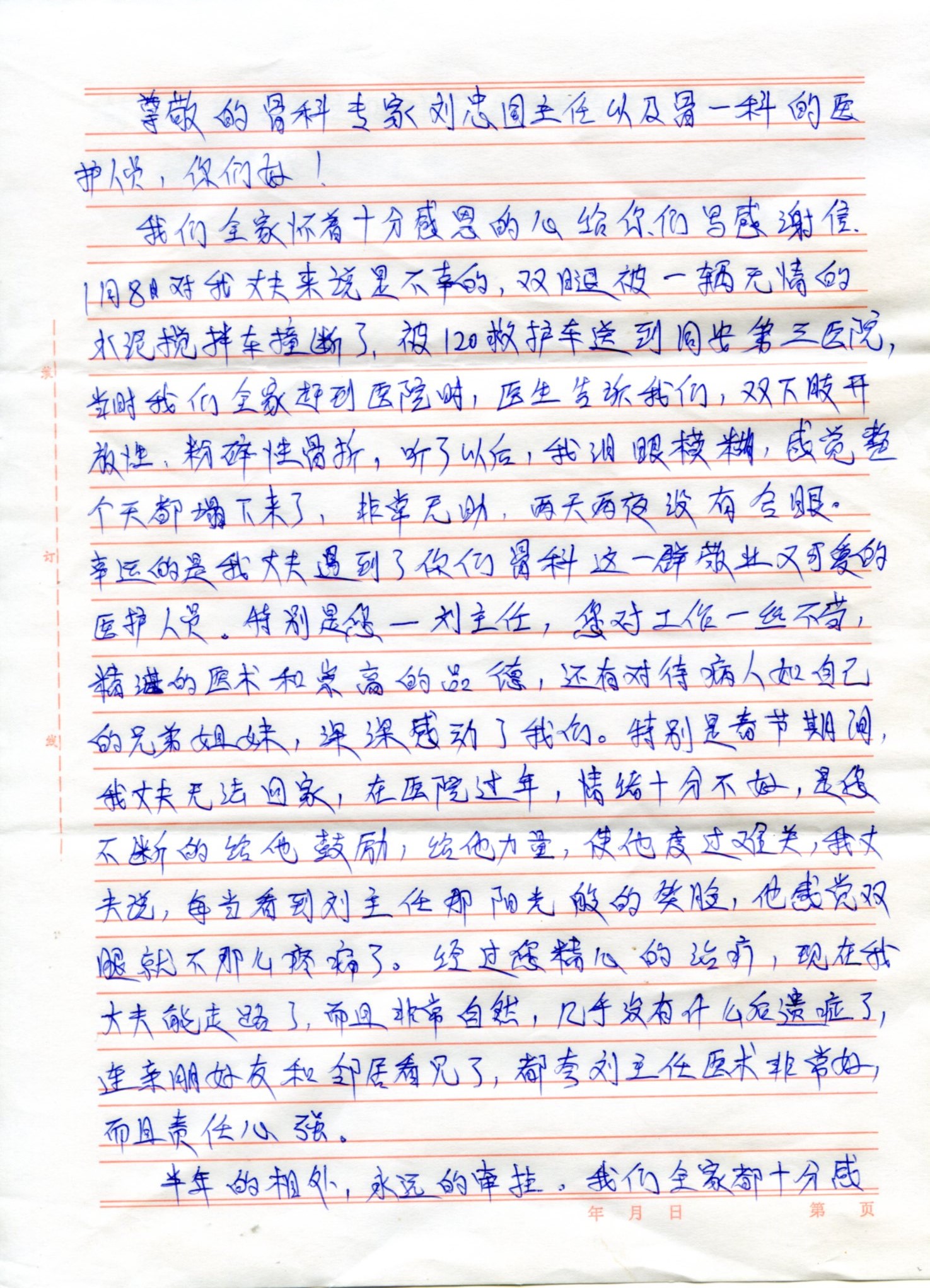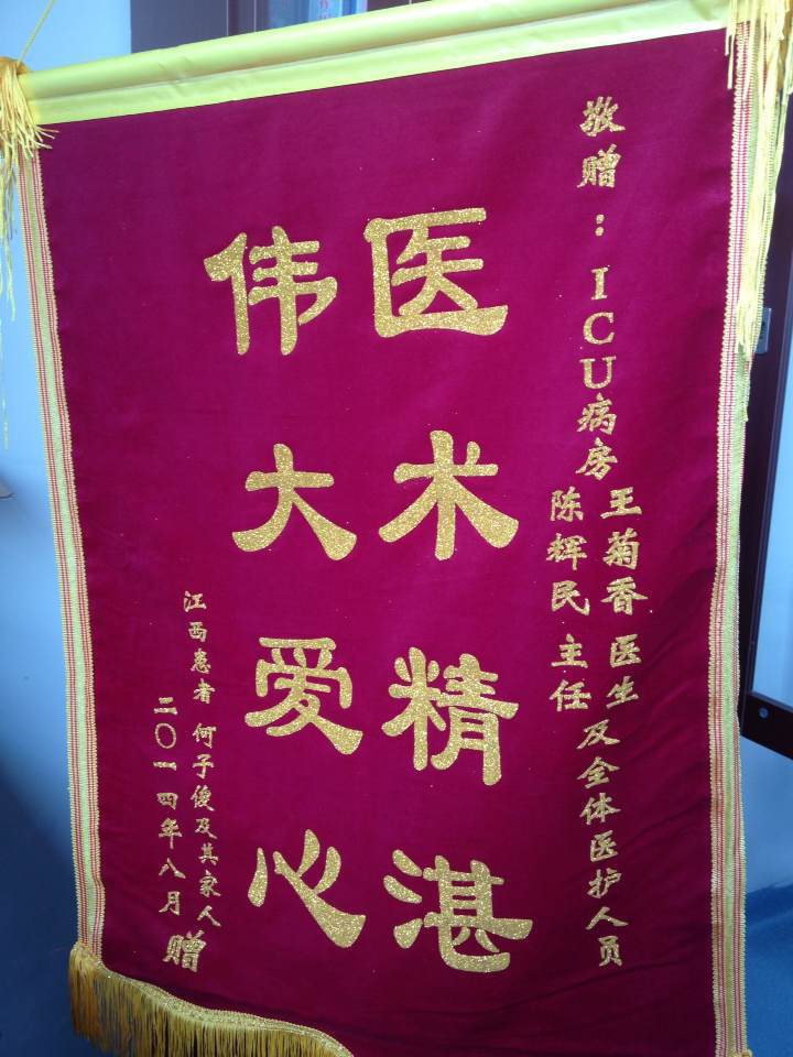 送给市第三医院ICU主任陈辉民、骨科主任刘忠国等医务人员的感谢信,锦旗。------来自病人一颗感恩心