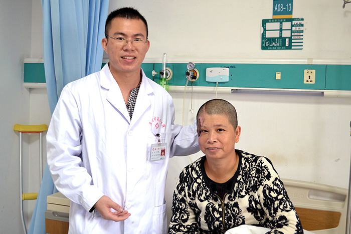 家住翔安的农妇阿真在送菜途中不幸遭遇车祸造成脸部毁形,血肉模糊,整个右侧头面部皮肤撕脱伴颞部(太阳穴处)皮肤缺损、颅骨外露,令人触目惊心。幸运的是,阿真被紧急送到第三医院救治,在手足外科专家的诊治下,取下了阿真脚背上近五十平方厘米带血管皮瓣移植到她的面部,让损毁严重的容颜恢复到了基本正常的状态。昨天办理出院时,得知自己不久后就能基本恢复原样的阿真绽放出了久违的笑容。