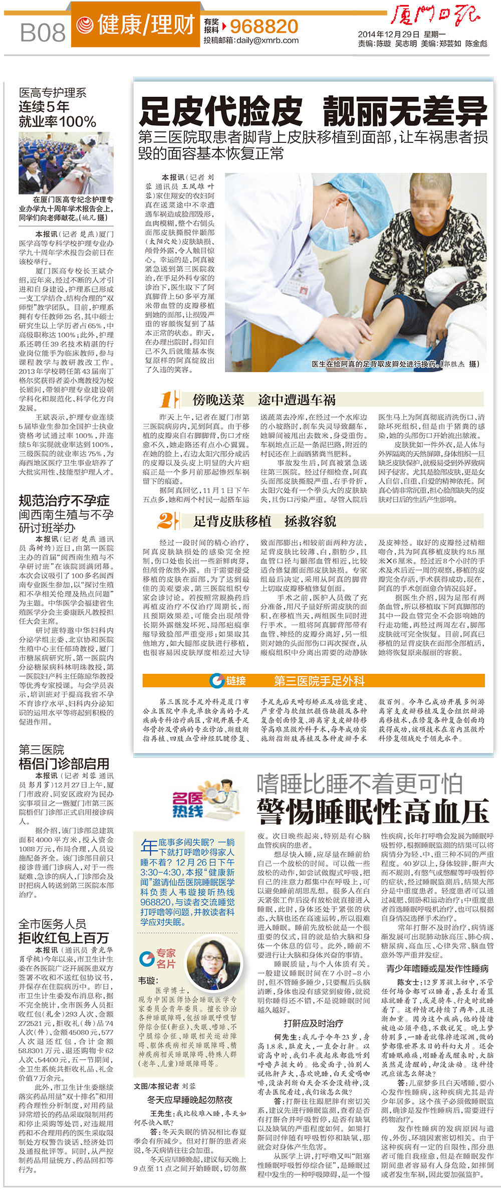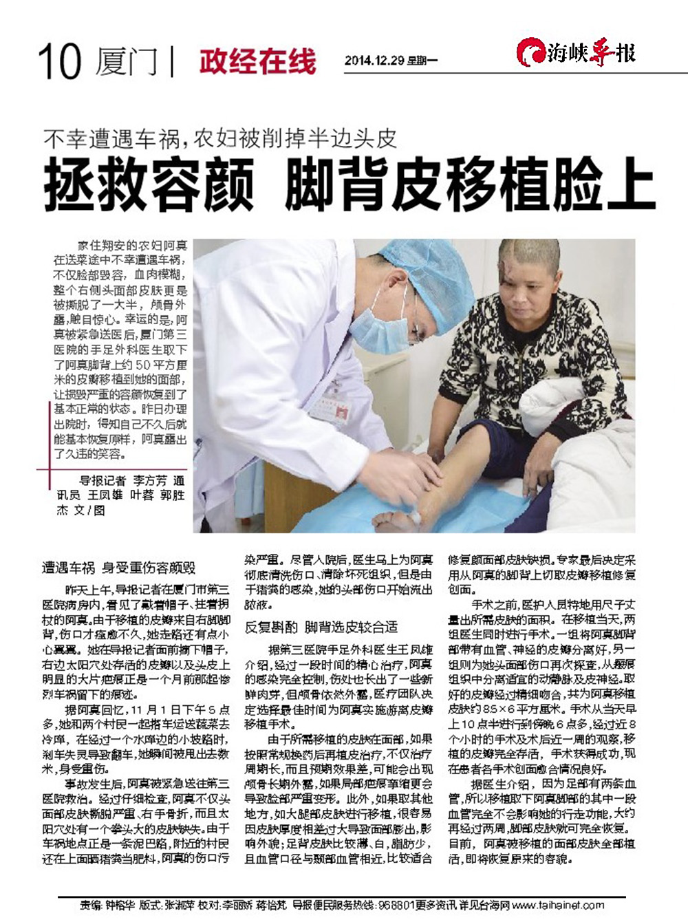 20141229 海峡导报10版 拯救容颜 脚背皮移植脸上