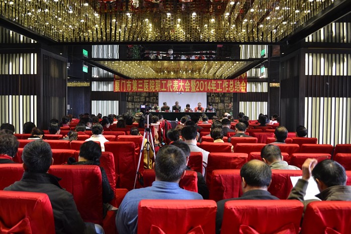 2014年工作总结会在雄壮激昂的国歌声中拉开帷幕,医院党委书记兼工会主席彭月芗主持会议。院领导、中层及其以上领导干部应邀出席,各科室推荐产生的92名职工代表承载着全院职工美好的希望和梦想,喜气洋洋,欢聚一堂,心系发展,情系改革,共绘医院发展蓝图。