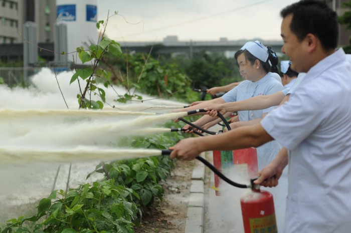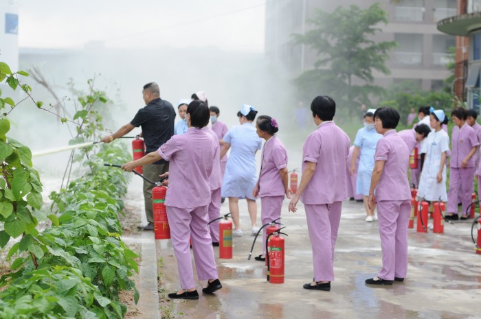 举办了一场消防应急演练活动,演练活动现场,保卫科负责人张昌伟为大家详细讲解灭火器的类型、操作使用原理和方法。并用生活中的鲜明事例为大家讲述了掌握用电、用气等安全知识的重要性以及一旦发现火情,如何组织病人疏散等应急处置技能,提高了大家的安全消防防范意识。在模拟现场,大家兴致高昂,按照讲解的示范要求实战操作了灭火器的使用,此次消防安全演练活动取得了圆满成功。