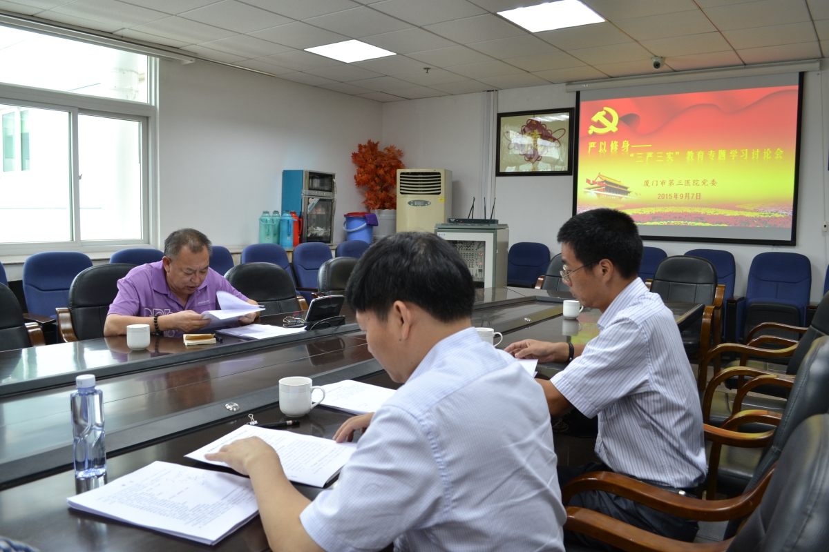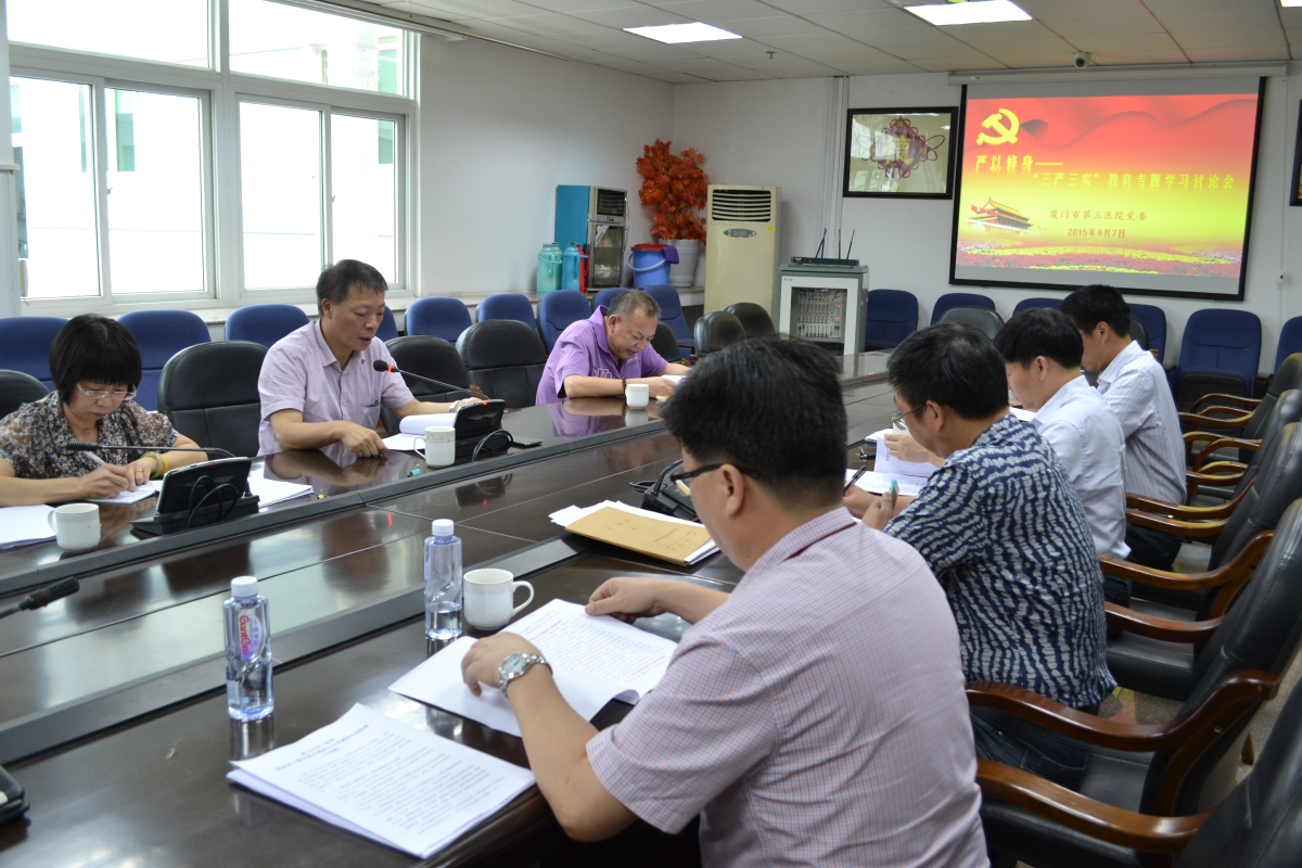 9月7日下午,根据区委的统一要求,按照第三医院“三严三实”专题教育工作部署,91club 召开了“严以修身”专题学习研讨会。党委书记彭月芗主持会议,叶惠龙院长、叶水龙副院长、高斌副院长、郭之通副院长、黄建隆副院长、陈辉民主任等同志参加了会议。