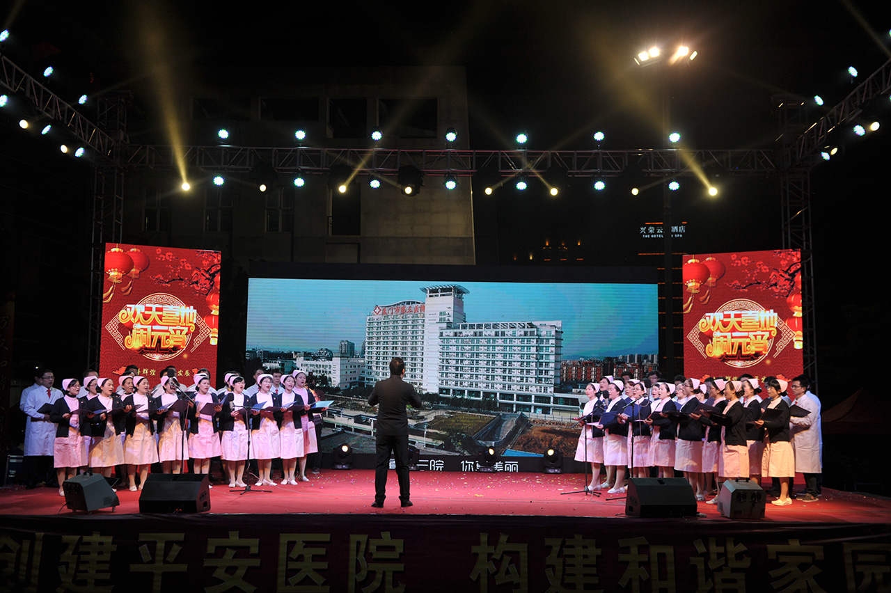 2月26日晚,市第三医院在门诊大楼广场举行“十年发展 十年辉煌”2016年元宵联欢晚会,全院医务人员以载歌载舞的形式展现新院建设10周年发展的辉煌历程,度过了一个祥和欢乐的夜晚。