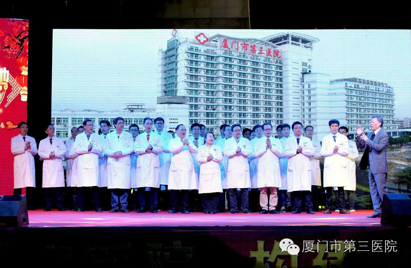 晚会开始之前,院长叶惠龙带领各科室医务精英一一上台致辞,并一起演唱了闽南语经典励志歌曲《爱拼才会赢》,勉励医院全体人员在今后的工作中再创佳绩,共创美好未来。