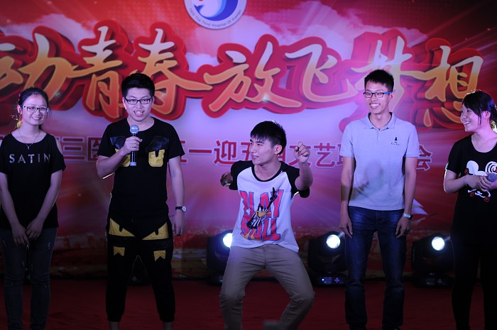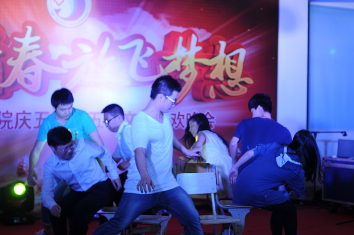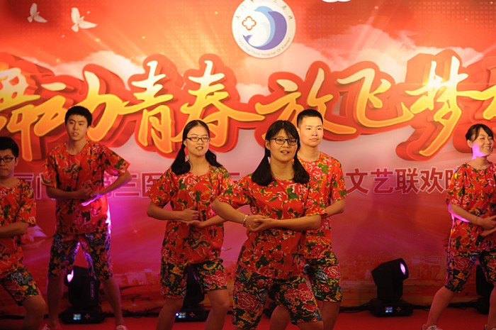 晚会由团支部自编、自导、自演的舞蹈《ALONE》、《倍儿爽》、《小苹果》、《健舞之美》、《欢乐的跳吧》等让观众愉悦心目,展示了团员青年青春、时尚与活泼;对唱《小幸运》、《小酒窝》及吉他弹唱《蓝莲花&曾经的你》、《花好月圆夜》等美妙的歌声响彻现场,使人心灵深受感动;舞剑《剑之魂》帅气凌然的姿势动作着实令观众们心动不已。院领导与科主任合唱的《我的祖国》,将晚会推向了一个高潮,纷纷献上鲜花气球,大家都沉浸在欢乐的海洋中。晚会最后在黄建隆副院长一曲《敢问路在何方》落下帷幕,表达了院领导对青年们的祝福及对未来道路的指引。晚会当中还穿插游戏环节,气氛热烈。