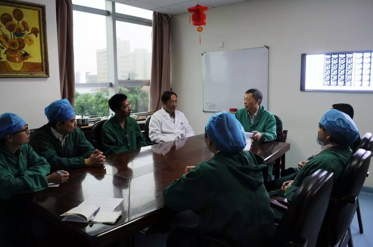 三院院长叶惠龙在带领各科室专家对阿芳的病情进行会诊、讨论抢救方案。