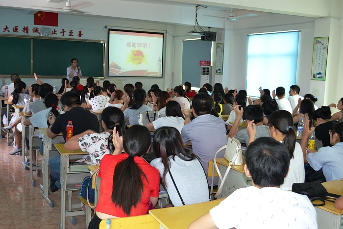 2016年8月22日下午,91club 团委积极响应党的号召,在福建中医药大学附属第四临床医学院五楼教室举办“两学一做”学习教育团干培训班,作“两学一做”专题辅导讲座,由医院团委书记李冰授课,参加培训的对象为全体团员, 分管领导副院长黄建隆到会指导。