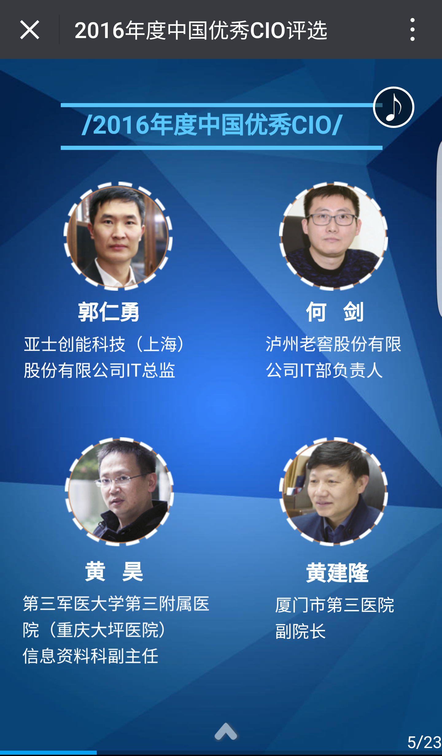 2017年1月15日,由计世传媒、《IT经理世界》杂志社、e行网、新金融世界联合主办的“2016年度中国优秀CIO评选”,在北京长安街W酒店揭晓最终榜单并举办了盛大颁奖典礼,来自两岸三地的近百位CIO出席了颁奖活动。