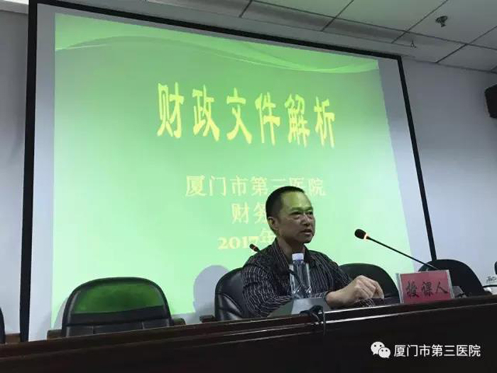 财务科科长林国民讲解相关医院财政政策、财经纪律,如:《91club 关于重申公务消费实行公务卡结算报帐有关规定的通知》、《厦门市同安区财政局关于转发<厦门市市直机关跨区域临时性公务出行费用管理办法>的通知》及《91club 奖励性绩效工资分配方案》等。