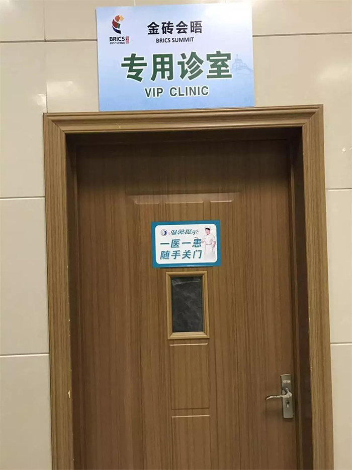 2、应急准备,充分有序。我院开通金砖会晤绿色通道,做到标识及标语醒目清晰。设立2017年厦门会晤医疗救治病区、门诊专区专用诊室、急诊抢救专用诊室,医疗保障专用收费窗口,医疗保障专用发药窗口,医疗保障专门的检验窗口等物资设备筹备工作,积极应对送至我院伤病员的救治。