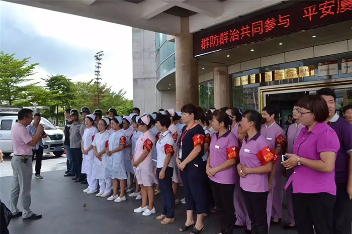 3、加强群防群治知识培训。保卫科组建一支由308人组成的群防群治队伍,对志愿平安者人员进行防控知识培训,向全院所有平安志愿者发放《群防群治随行手册、卡片》,邀请祥平派出所民警强化重点培训,提高反恐防范意识,提升检查防范能力。全院每天实现零报告。