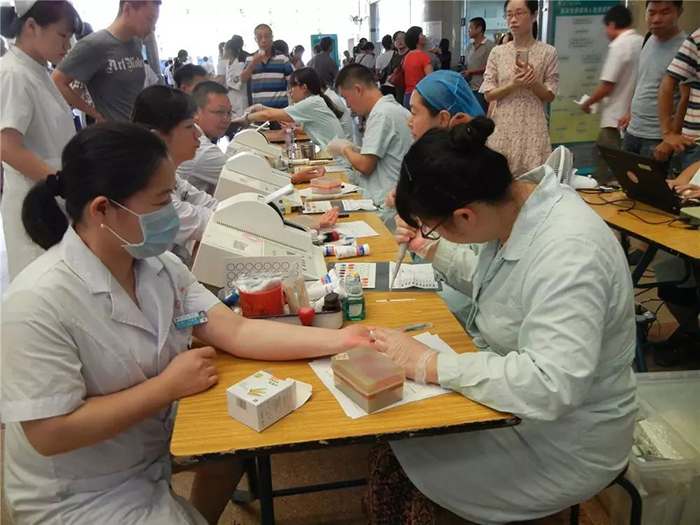 5、仁心仁术献热血,医疗保障我先行。8月16日,医院在门诊大厅举办“凤凰花盛开”七大活动之一“仁心仁术献热血,医疗保障我先行”无偿献血活动,现场有两百余名爱心人士用自己的热血点滴善举,汇聚成救人危难的人间大爱,一天献血量高达五万毫升。参与活动的爱心人士大部分都是身着工作服的医护人员,为了不耽误工作,一大早便赶来现场登记排队,献血后又投入到繁忙的医疗救治工作中去,用实际行动诠释着三院人的爱心、责任与担当,表达了回馈社会的真挚情感和无私奉献的精神。
