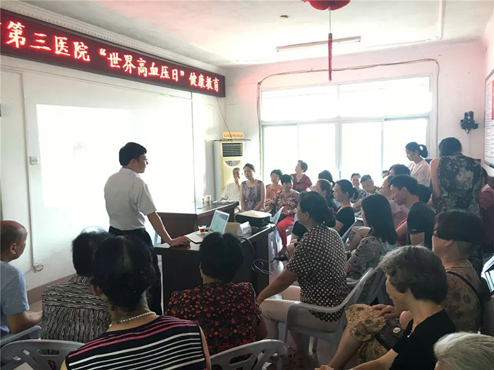 5月25日,内科党支部在黄建隆副院长的带领下,组织党员、心血管科医生深入大同社区卫生服务中心,为社区群众进行高血压病健康防治知识讲座,宣传慢性病防治知识,普及健康素养基本知识和技能,倡导更健康的生活方式,更好的唤起群众对于高血压等慢病防治的重视。