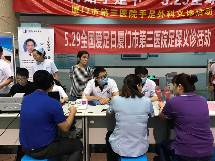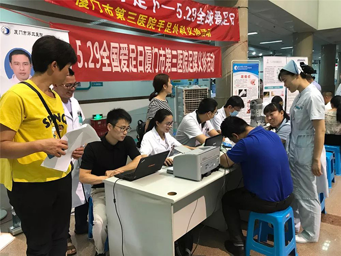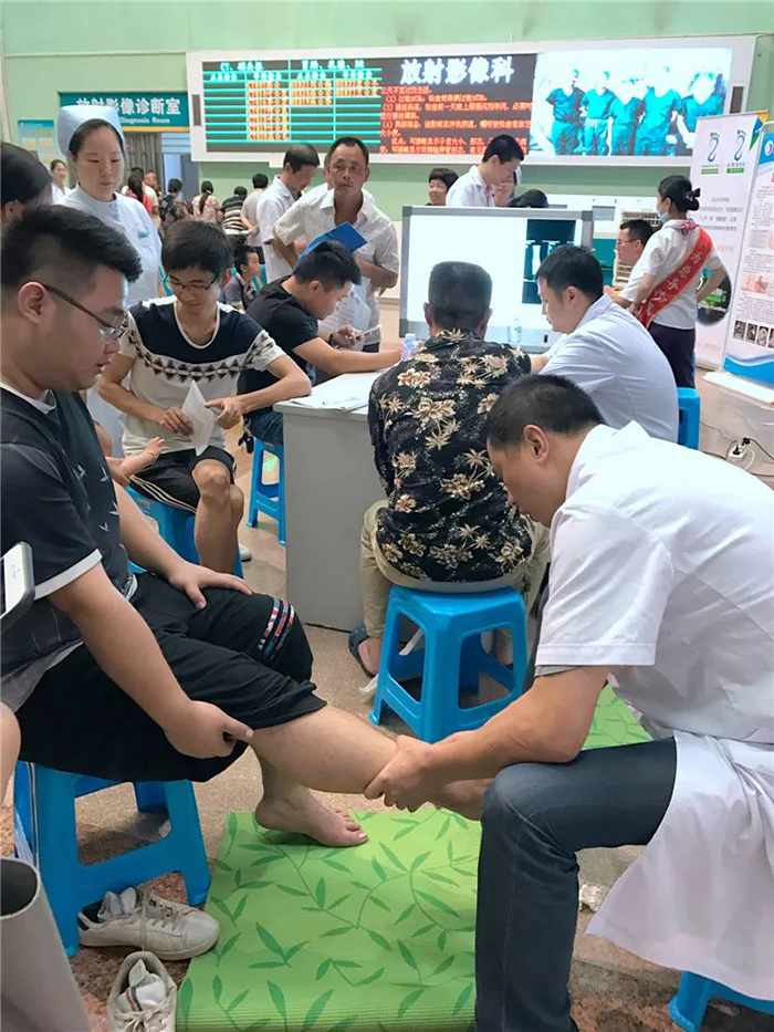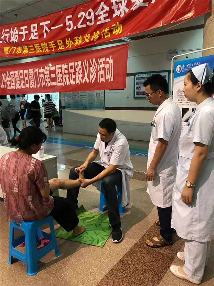 5月29日上午,外科党支部组织党员、医务人员在医院门诊大厅开展“全球爱足日”义诊咨询活动,为群众健康义诊,筛查足部疾病的同时,普及拇外翻、扁平足、踝关节扭伤、跟痛症、踝管综合症等足病知识。用专业的角度、专业的知识,帮助群众了解足踝疾病知识和保健方法,引导民众对足部的重视与避免认识误区。下午,还冒着炎炎烈日深入洪塘镇埔后村开展义诊咨询活动。义诊活动的现场人头攒动,专家们通过检查、了解病史对症开出处方,并耐心地指导群众服药方法及注意事项。医务人员免费为群众进行血压、血糖的测量,并宣传健康知识,传授保健技能,倡导健康生活等。对于一些行动不便的患者,还主动上门热情服务。由于大部分前来义诊的村民为中老年人,听力有些障碍,每个医务人员都耐心细致、不厌其烦的逐一解答他们提出的各种问题。