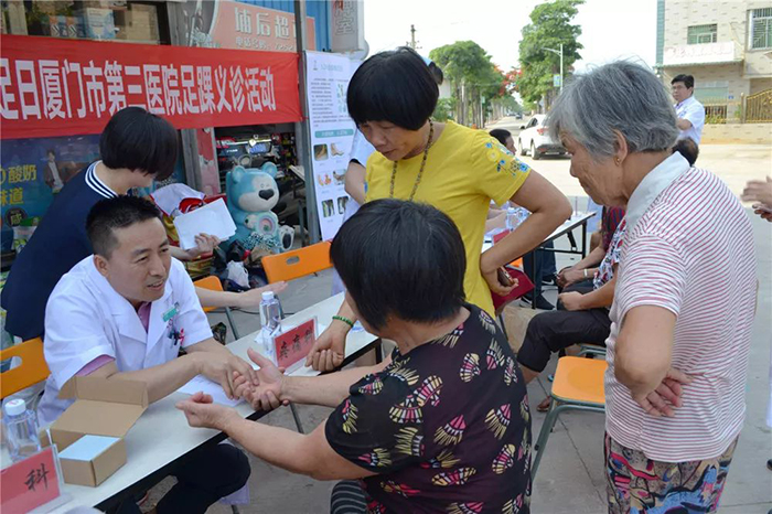 凤凰花开的五月,骄阳似火,热浪袭人。厦门市卫计委凤凰花志愿服务大队第三医院分队组织医疗专家冒着高温酷暑走村入户开展了一系列健康义诊活动,让老百姓在家门口就能享受到专家的医疗服务。