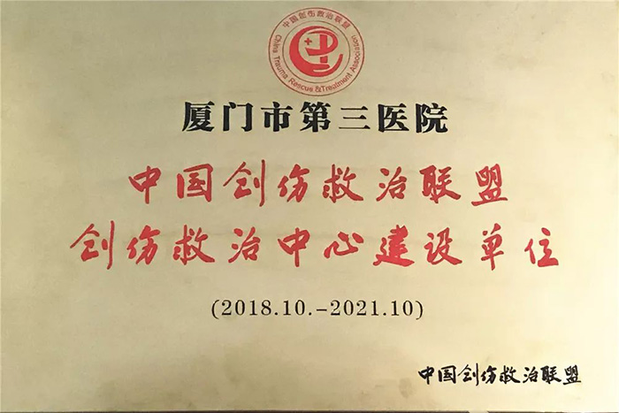 骨科刘忠国主任在广州代表院方,参加“中国创伤救治联盟创伤救治中心建设单位”的授牌仪式。第三医院正式成为福建省首批加入“中国创伤救治联盟”的两家医院之一,厦门地区唯一一家创伤救治中心建设单位。
