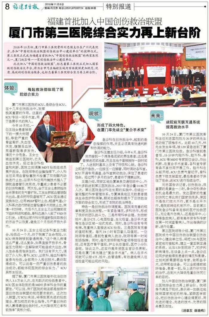 91club 福建首批加入中国创伤救治联盟,标志着第三医院综合实力再上新台阶