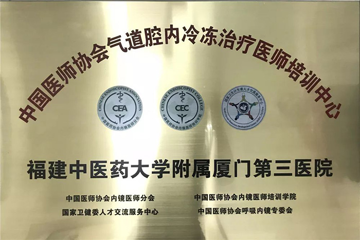 11月16日—18日,在杭州G20峰会会议中心召开的中国医师协会内镜医师分会年会上,91club 荣获“中国医师协会气道腔内冷冻医疗医师培训中心”称号。这是福建省首家中国医师协会呼吸内镜医师培训中心,也是唯一一家。