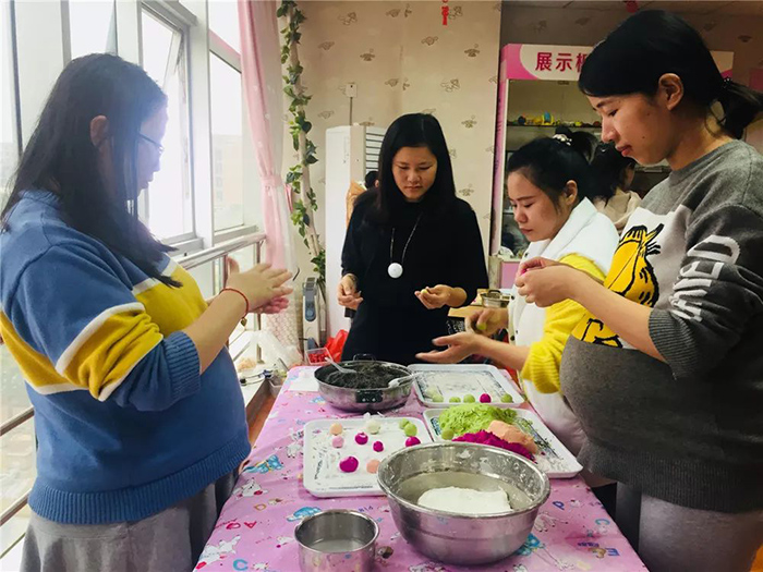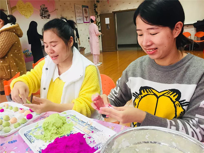 在日前的元宵节当天,妇产科还在孕妇学校开展了庆元宵活动。医护人员准备了火龙果、菠菜、胡萝卜、西红柿榨汁和好糯米粉,并备好花生馅、芝麻馅等,孕妈们现场搓汤圆、煮汤圆,共享愉快时光。