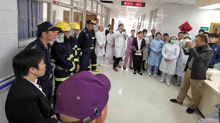 其实,早在康复科、呼吸一科等科室搬迁至三期康复病房前,医院保卫科就逐一开展消防安全培训演练,要求每位员工必须熟悉逃生路线和标志,熟悉消防器材、氧气管道阀门的位置和掌握正确使用方法。