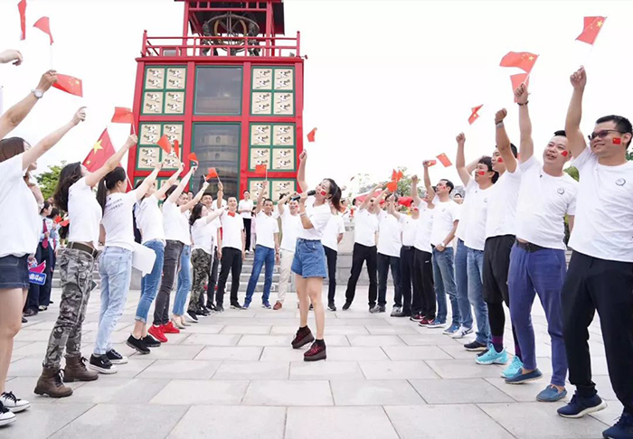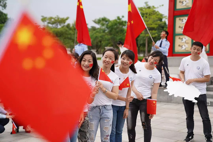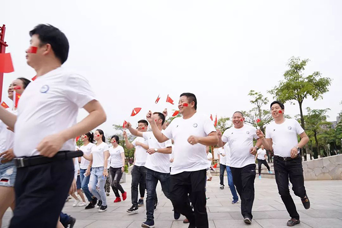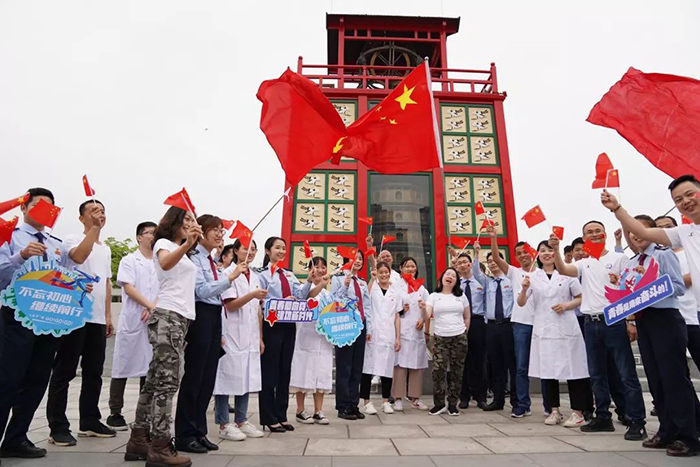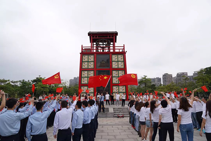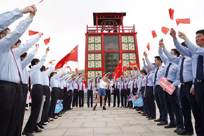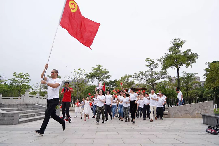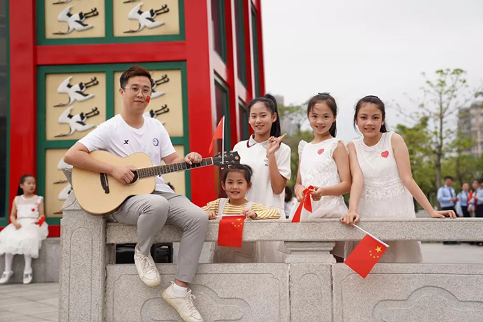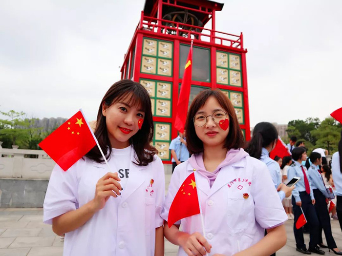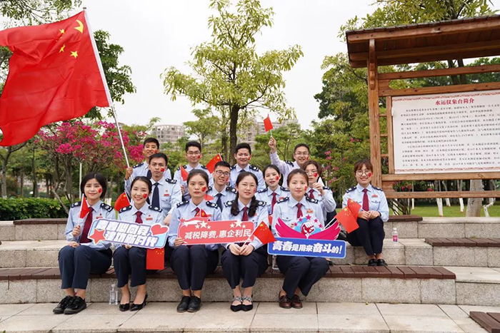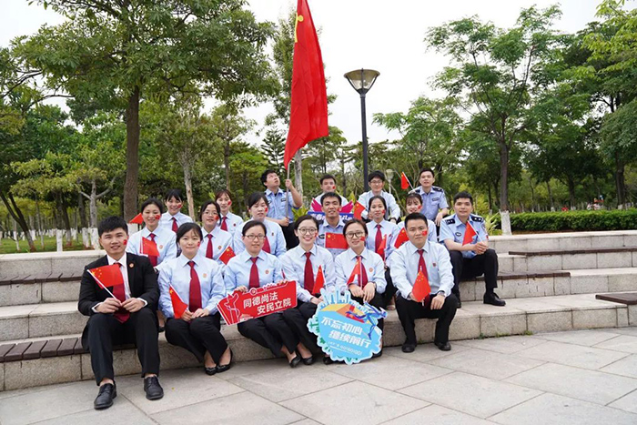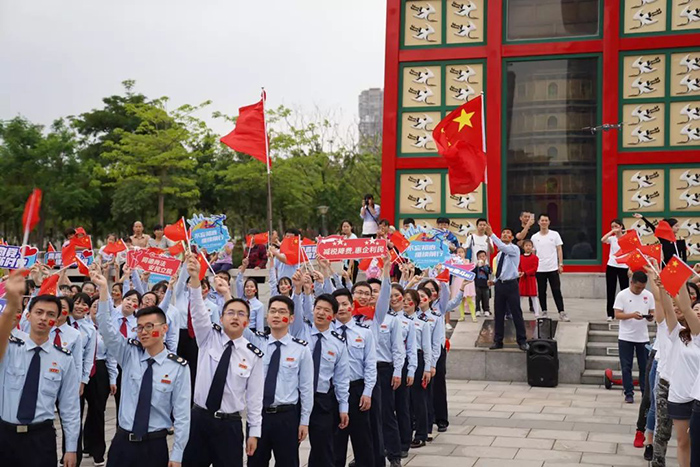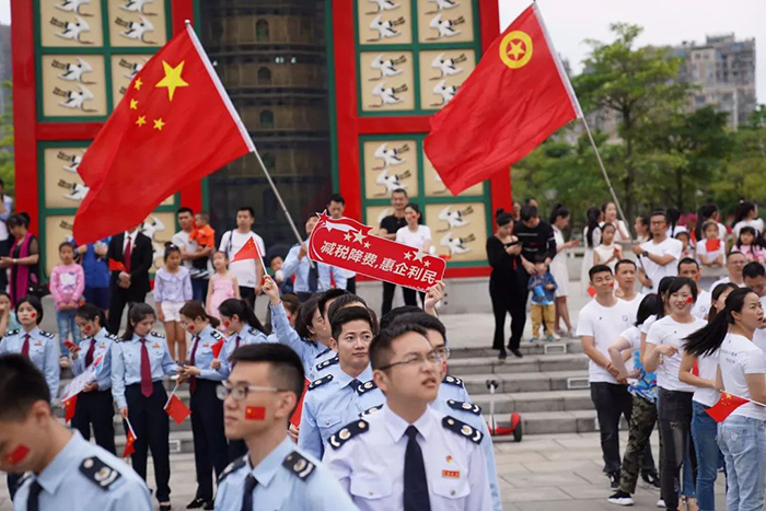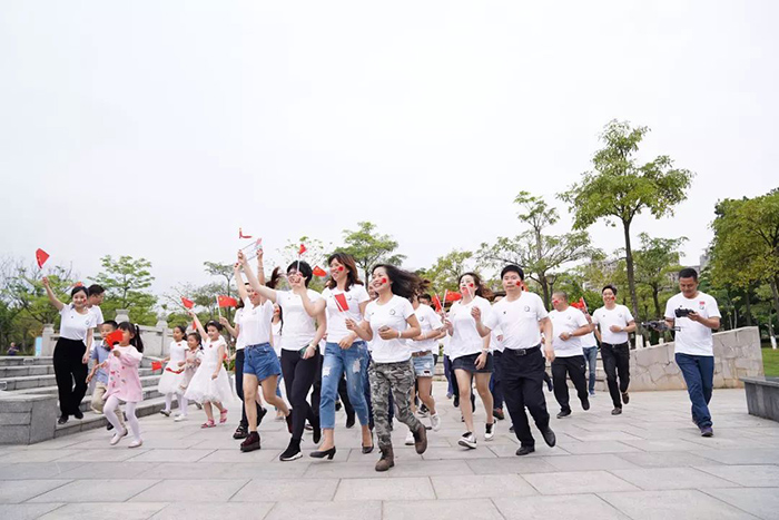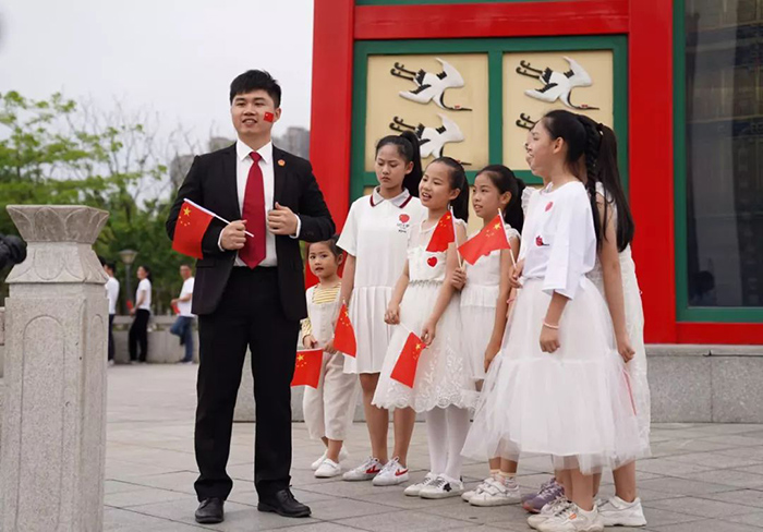 、同安区人民法院、同安区税务局组成的百人团于同安苏颂公园共同唱响“我的中国心”。