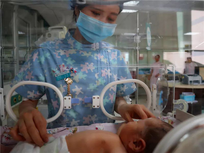 “小宝贝,阿姨给你洗澡了。" 在儿科的新生儿室,新生儿的每一天都从护士们的温柔爱抚开始。护士 " 妈妈 " 们轻轻按摩婴儿脸蛋和身体、揉搓他们的小手和小脚,让他们露出笑容。