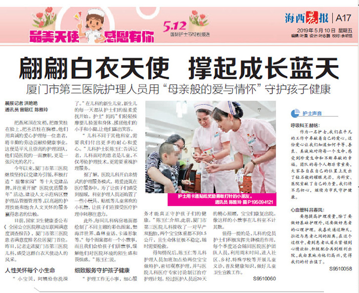 “儿科不同于其他科室,需要我们付出更多的耐心和爱心。" 儿科护士长陈玉仁告诉记者,儿科面对的患者是儿童,不仅考验护理技术,更需要重视护理服务。