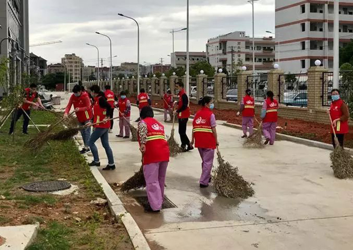 5月7日,医院组织开展“红五月”系列活动之洁净家园大行动。医院领导带队,80名党团员、职工及爱玛客员工积极参加。劳动中,党员发挥率先垂范作用,志愿者们发挥“热爱劳动、洁净我家”的主人翁精神,手持扫把、簸箕、垃圾钳,分工协作,认真清理医院三期病房楼、综合楼和地下停车场的卫生死角,劳动场面热火朝天。经过一个多小时的努力,整个环境焕然一新。
