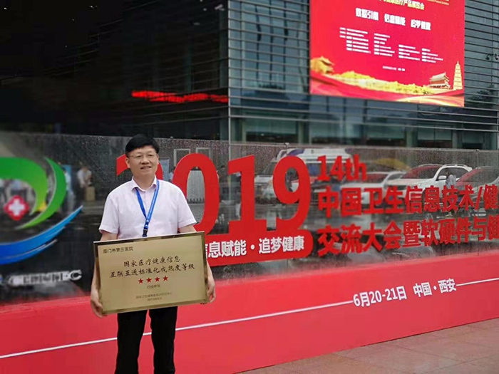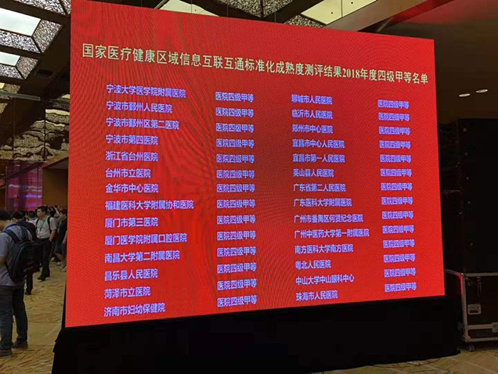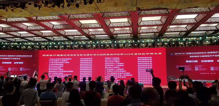 大会隆重举行“2018年度国家医疗健康信息互联互通标准化成熟度等级测评”授牌仪式。我院领取了国家医疗健康信息互联互通标准化成熟度四级甲等牌照。