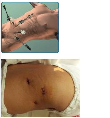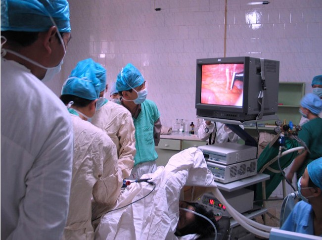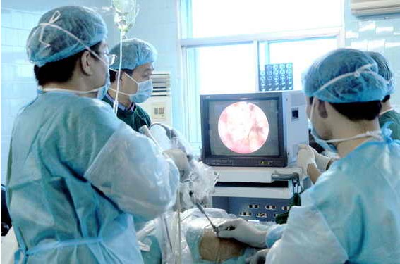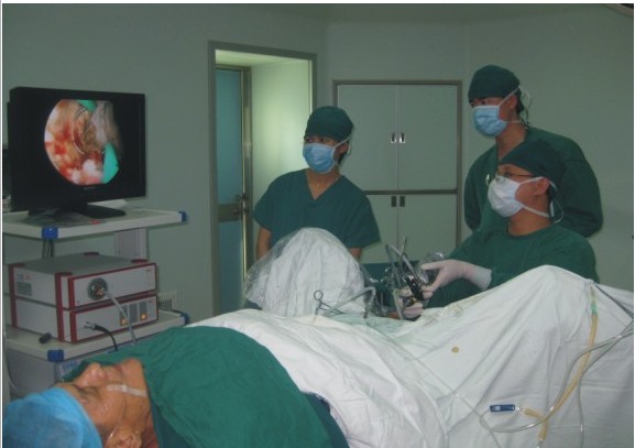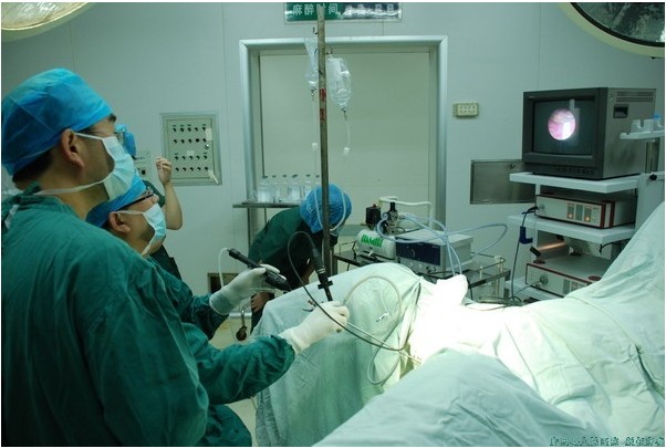4、腹腔镜手术:泌尿外科的器官虽然多数在腹膜外,但近年来,腹腔镜泌尿外科手术发展迅猛,从肾上腺肿瘤切除、肾癌根治,到膀胱全切、前列腺癌根治,几乎开展到泌尿系统的各个部位。该技术将原来的开膛破肚的大手术,变成仅需3~4的小孔的微创手术。真正做到了“大病小治”。